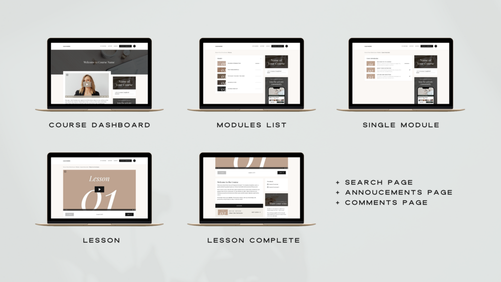 - Includes module and lesson thumbnail templates for a fully-custom look