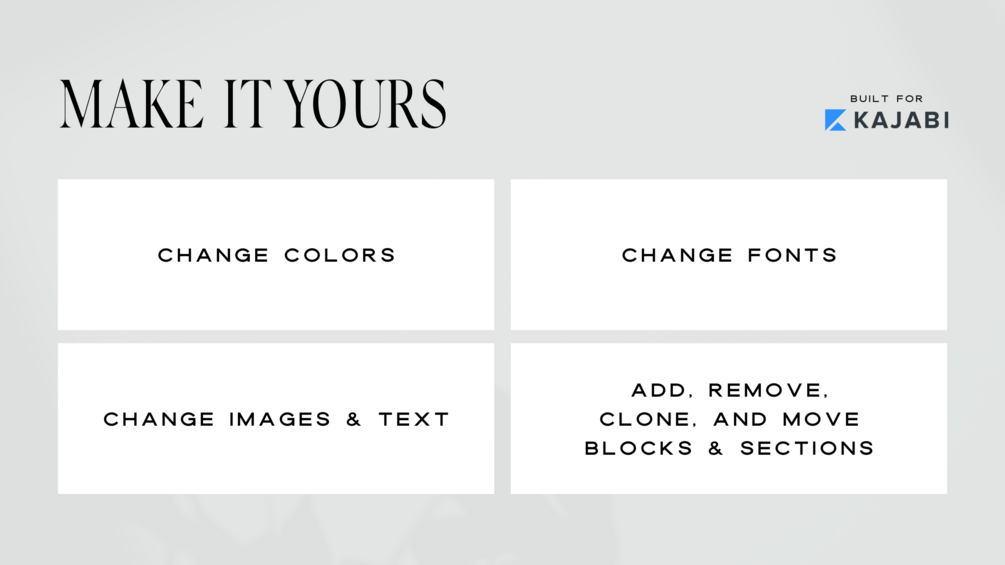 - Instant access to all 5 Kajabi page templates