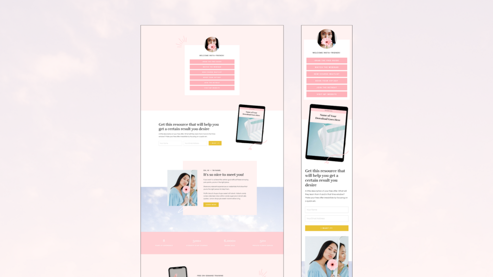 Put your offers at your followers' fingertips with an Instagram Links page designed to grow your list and showcase all your amazing resources.