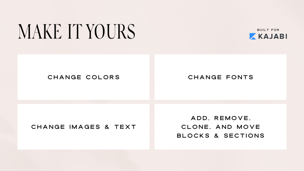 - Instant access to all the Kajabi website theme, including 11 pages and custom exit pop-up